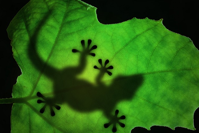 Lizard silhouette in the leaf