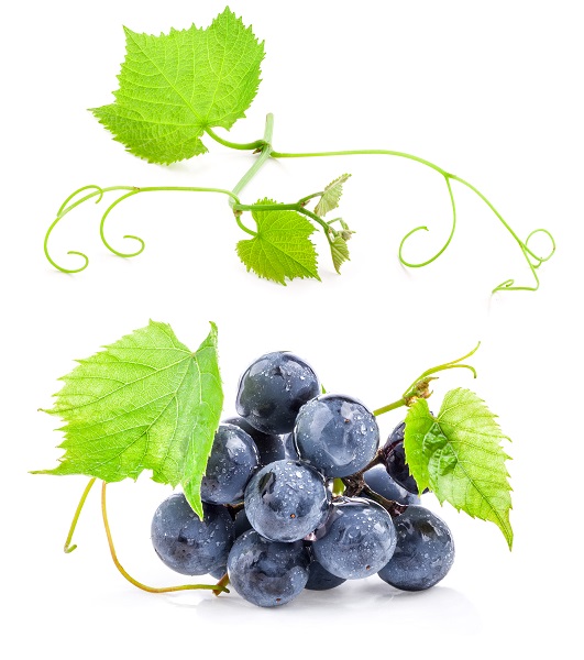 Collection of Dark grapes with leaves, Isolated on white